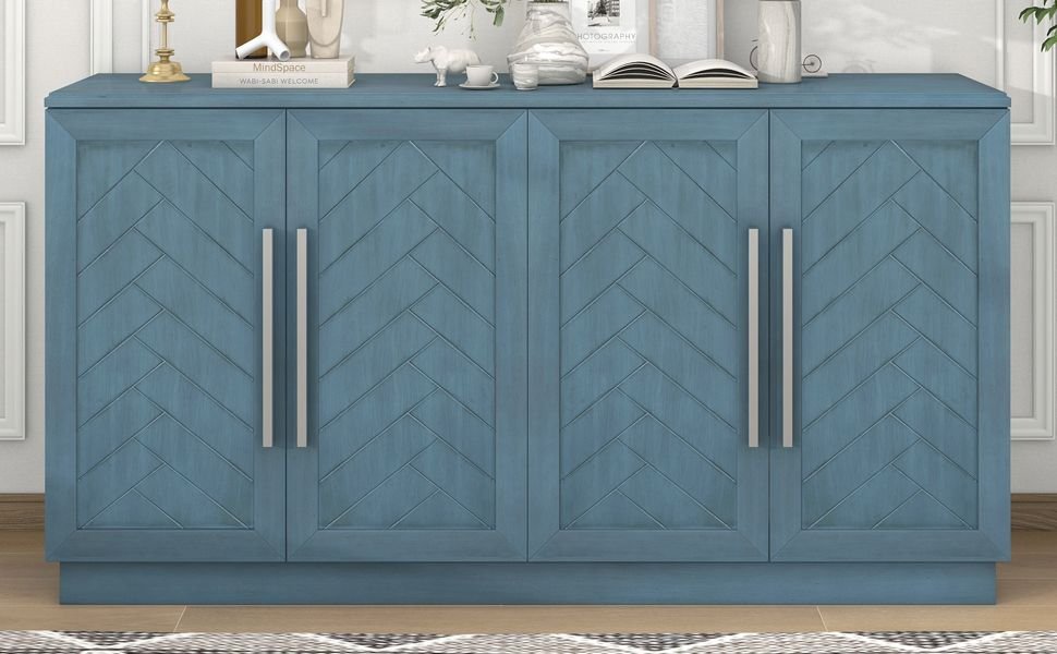 Three Color Options: Our sideboard comes in three different colors for users, namely antique blue, white, and black. The white and black cabinets match the silver handles naturally exude a sense of light luxury, and look bright and clean. The navy blue one matches the silver accessories showing gorgeous and high class, and that can bring a retro romantic feel to the house.