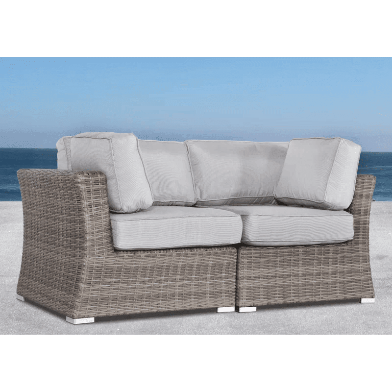 Add a touch of cozy, beachy charm to your outdoor space with this stylish wicker loveseat. Perfect for your covered porch, sunroom, or patio, it features a classic woven rattan texture with a traditional silhouette, including a flat top, flared arms, and sturdy block feet. The neutral mixed grey color easily complements any decor, while six foam-filled olefin cushions provide inviting comfort. The cushions are fade-resistant and water-resistant, making them perfect for year-round use. Best of all, the loveseat is designed to resist UV rays, mildew, and rust for lasting durability.SpecificationsOverall Dimensions: 26" H x 66" W x 33" DCushion Dimensions: 5" HSeat Height (Without Cushion): 13" HSeat Depth: 33" DChair Back Height: 13" H (Seat to top of back)Back Cushion Thickness: 7" DFrame Color: Mixed GreyCushion Color: GreyDetailsProduct Type: LoveseatFrame Material: WickerSeating Capacity: 2Cushions Included: Yes (6 cushions total)Cushion Durability: Water-resistant, fade-resistant, UV-resistant, and suitable for year-round useCushion Cover Material: Polypropylene / OlefinCushion Fill Material: FoamRemovable Cushions: YesMachine-Washable Cushion Cover: YesCountry of Origin: ChinaProduct Care: Clean with soap and water, machine washable cushion coversAssemblyAssembly Required: NoThis fully assembled 66" wide wicker loveseat brings a relaxed yet refined style to your outdoor retreat, offering comfort, durability, and easy care.