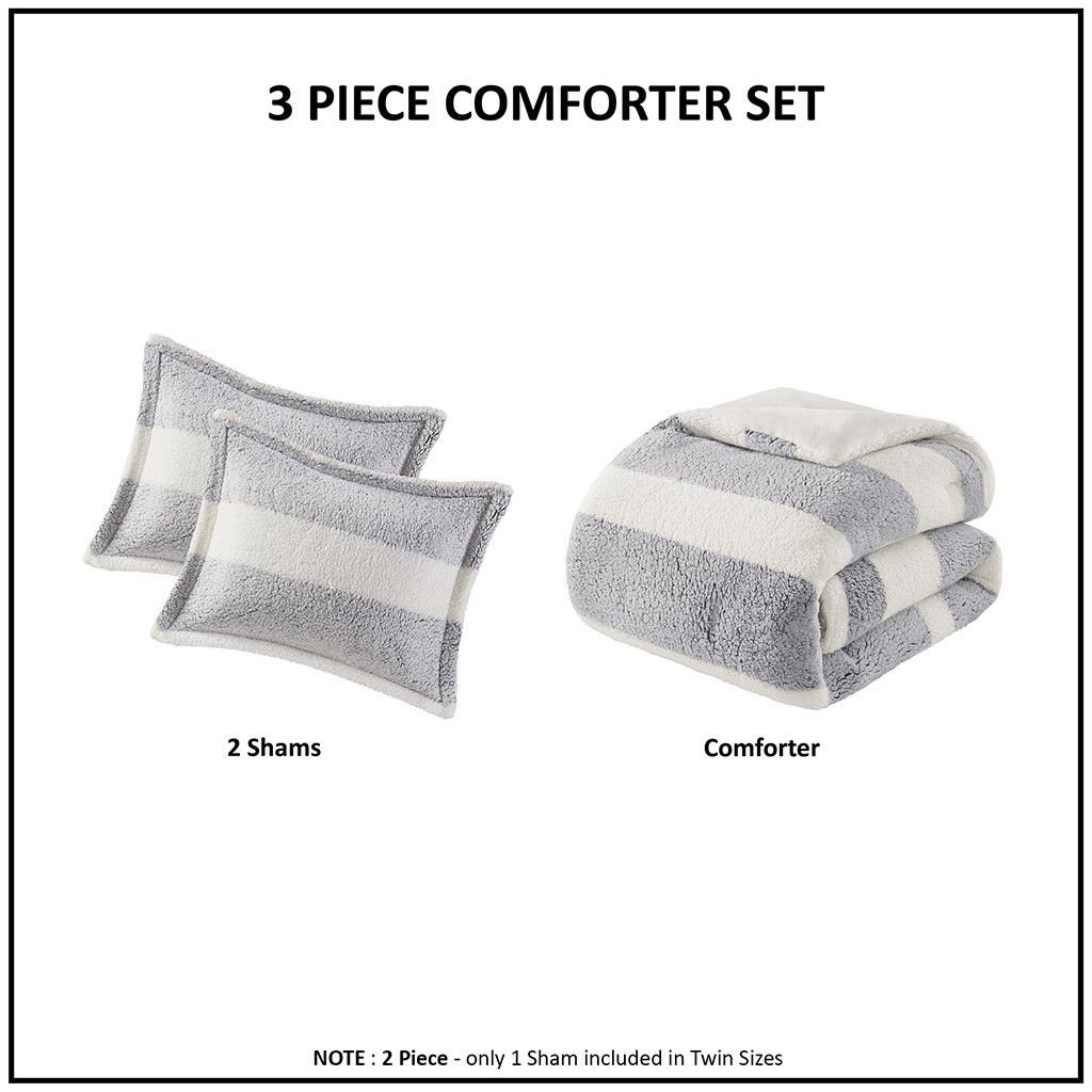 Comforter/Sham: 100% polyester back print striped sherpa, 100% polyster solid mink reverseFilling: 100% polyster fiber