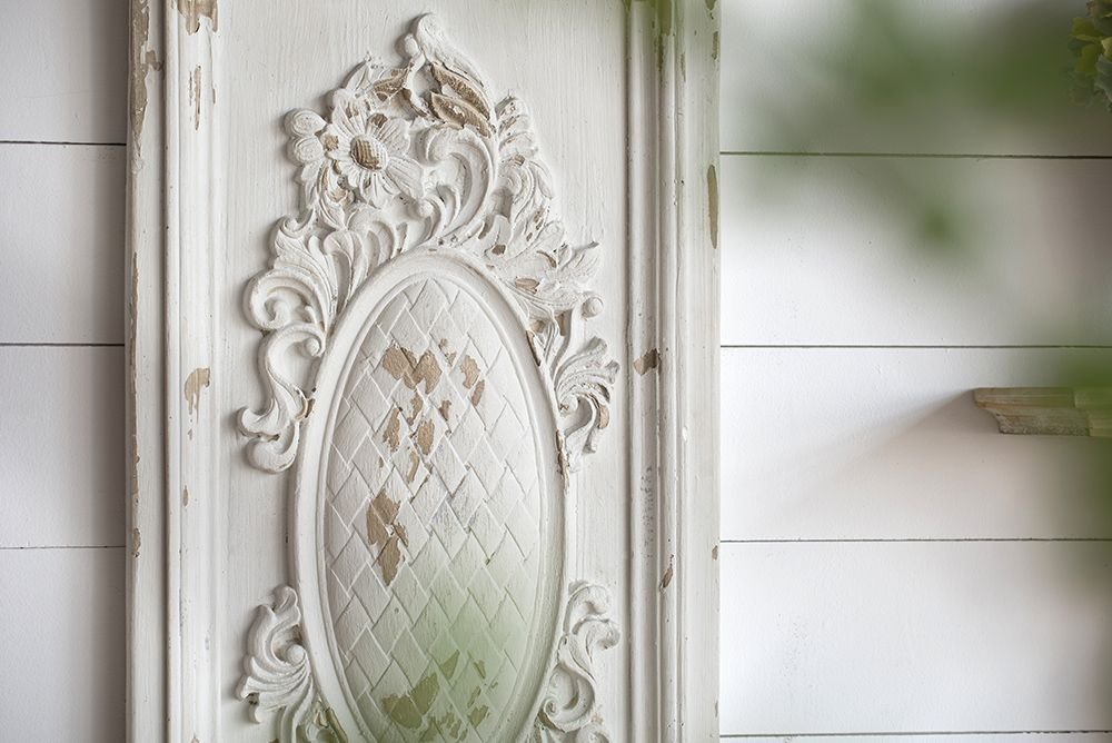 Inspired by ornate boiserie designs, this Alcott Decorative Wall Panel enhances interiors with classical style. A simple white finish gives way to a weathered textural effect, imparting a timeworn appearance that makes this panel one-of-a-kind. Hang horizontally or vertically to fit any space.