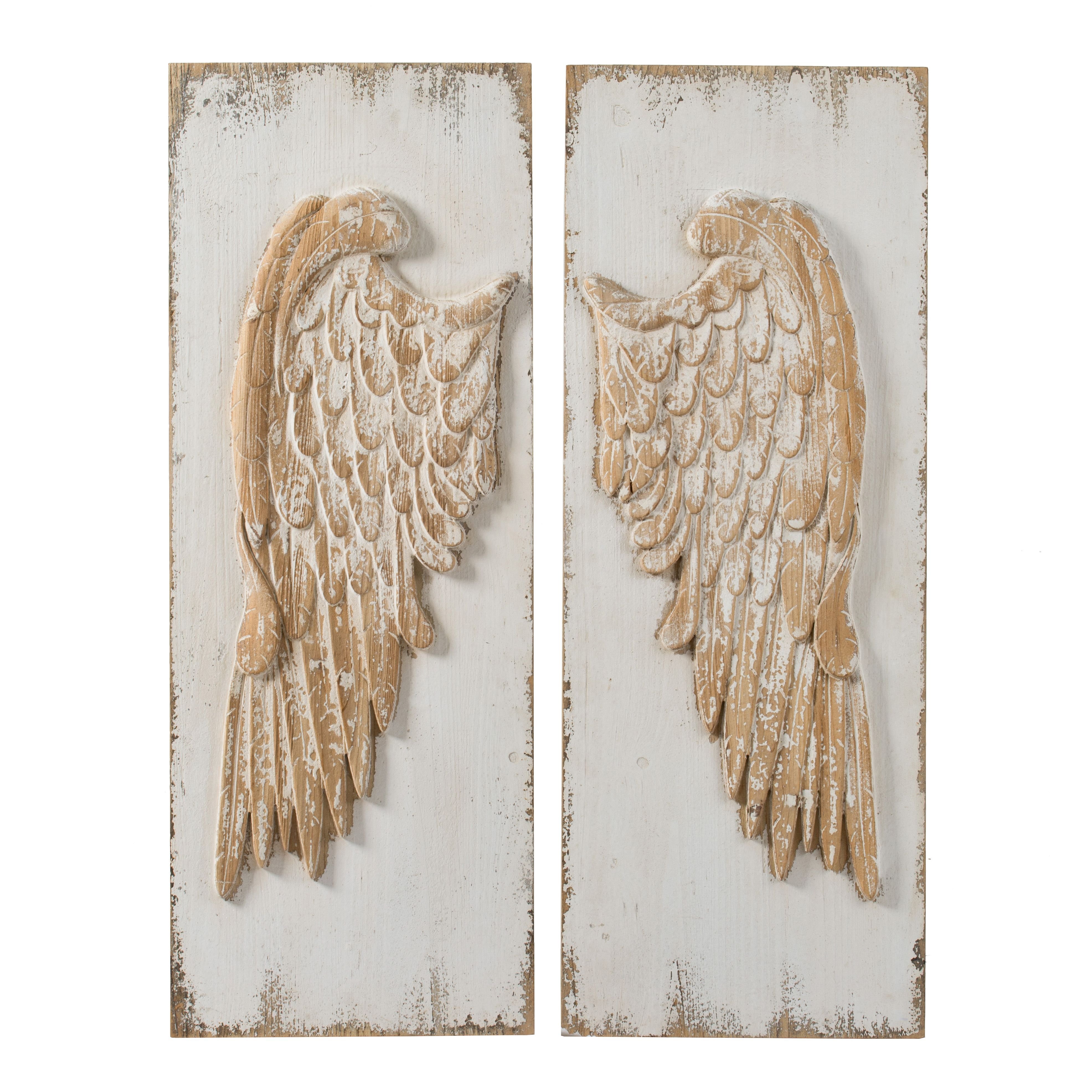 Introduce a powerful statement to your home with this set of two intricately designed wooden feather wing panels. With their vintage-inspired details and whitewashed natural finish, these stunning panels will complement most interior styles, embellishing the decor in your living room, bedroom, or entryway. Measurements: 42H x 2D x 15.5W.