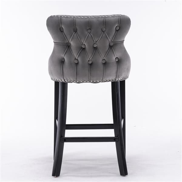 Home > Furniture,Contemporary Velvet Upholstered Wing-Back Barstools with Button Tufted Decoration and Wooden Legs, and Chrome Nailhead Trim