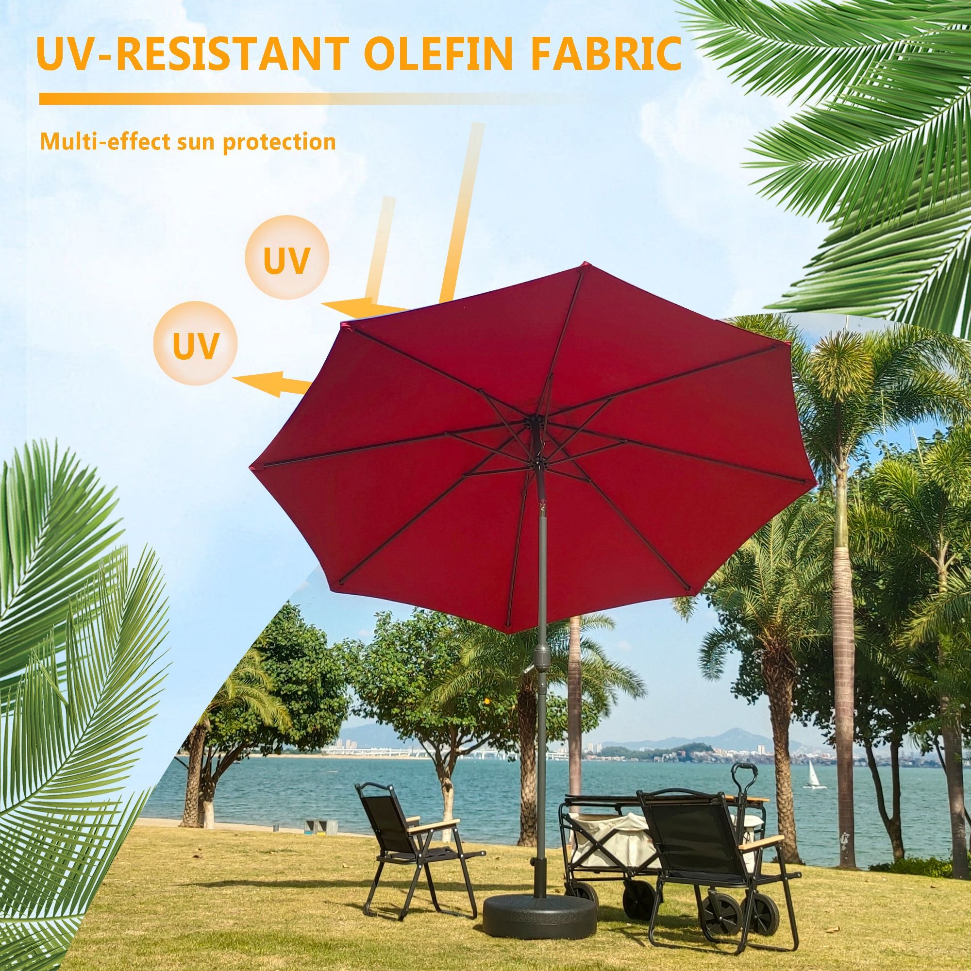 Efficient Shade Solution: Providing around 63 square feet of coverage, this umbrella is perfect for pairing with 42 to 52-inch outdoor tables, offering comfortable shade for 2-4 people.Sturdy Build: Constructed from durable aluminum and steel, powder-coated for longevity, and featuring 8 robust ribs for added support and stability.User-Friendly: Equipped with a smooth crank lift for effortless opening and closing, with an adjustable angle for personalized Sun-following relaxation.UV Protection and Waterproof: Utilizing 200G premium polyester fabric, this umbrella offers UPF 50+ for 98% UV blockage, along with a PA coating for waterproof durability.Versatile Placement: Suitable for various outdoor settings, complementing a range of outdoor decor and furniture styles.Base Not IncludedNote: To extend the umbrella's lifespan, it's recommended to securely tie it when not in use, especially during windy or rainy conditions.Easy Setup: Installs quickly without the need for tools, providing shade with convenience.