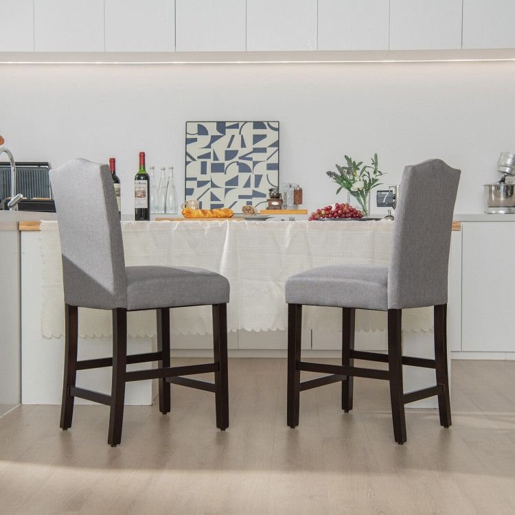 25 Inch Set of 2 Upholstered Counter Height Bar Stools with Rubber Wood Legs