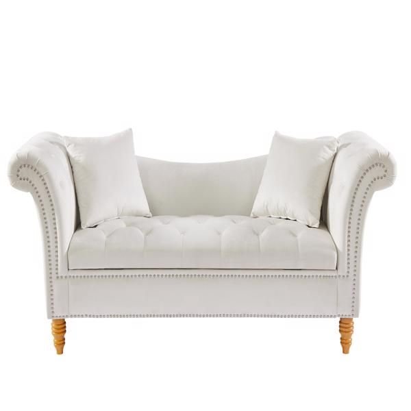 The sofa is wrapped in a velvet fabric (100% polyester) for a soft, three-dimensional feel. Four solid wood legs add structural detail to the ends of the sofa. The sofa frame is made of eucalyptus solid wood for durability. Comes with two pillows for softness and comfort, and the sofa's cushions can be flipped to hold items. We hope you enjoy spending time with family or friends on this sofa.