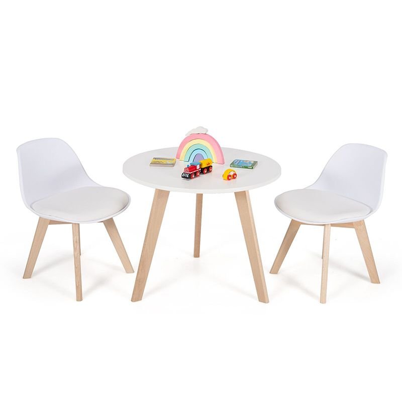 Soft sponge-padded seat cushion greatly improving sitting feelingReasonable height of table for guiding the correct sitting postureSpacious desktop provides plenty of space for children's daily activitiesSmooth surface and round edge design for better touching feelings and easy to cleanSturdy beech legs feature great durability and enhance the load bearing up to 176 lbsErgonomic chair backrest effectively protects the child's spineASTM and CPSIA certification offers best protectionExquisite modern design, suitable for bedroom, living room, playroom and nurseryEasy to assemble with the detailed instructions provided