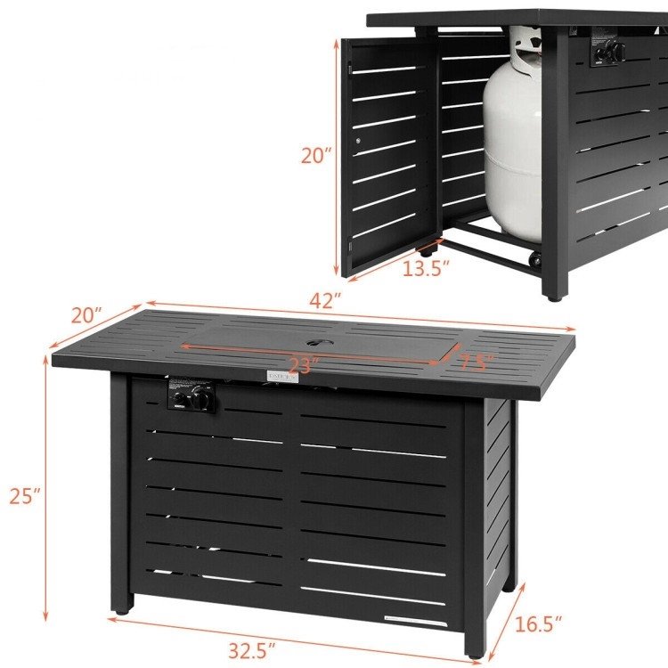 • Fire Pit Dimensions: 42 inches L x 20 inches W x 25 inches H